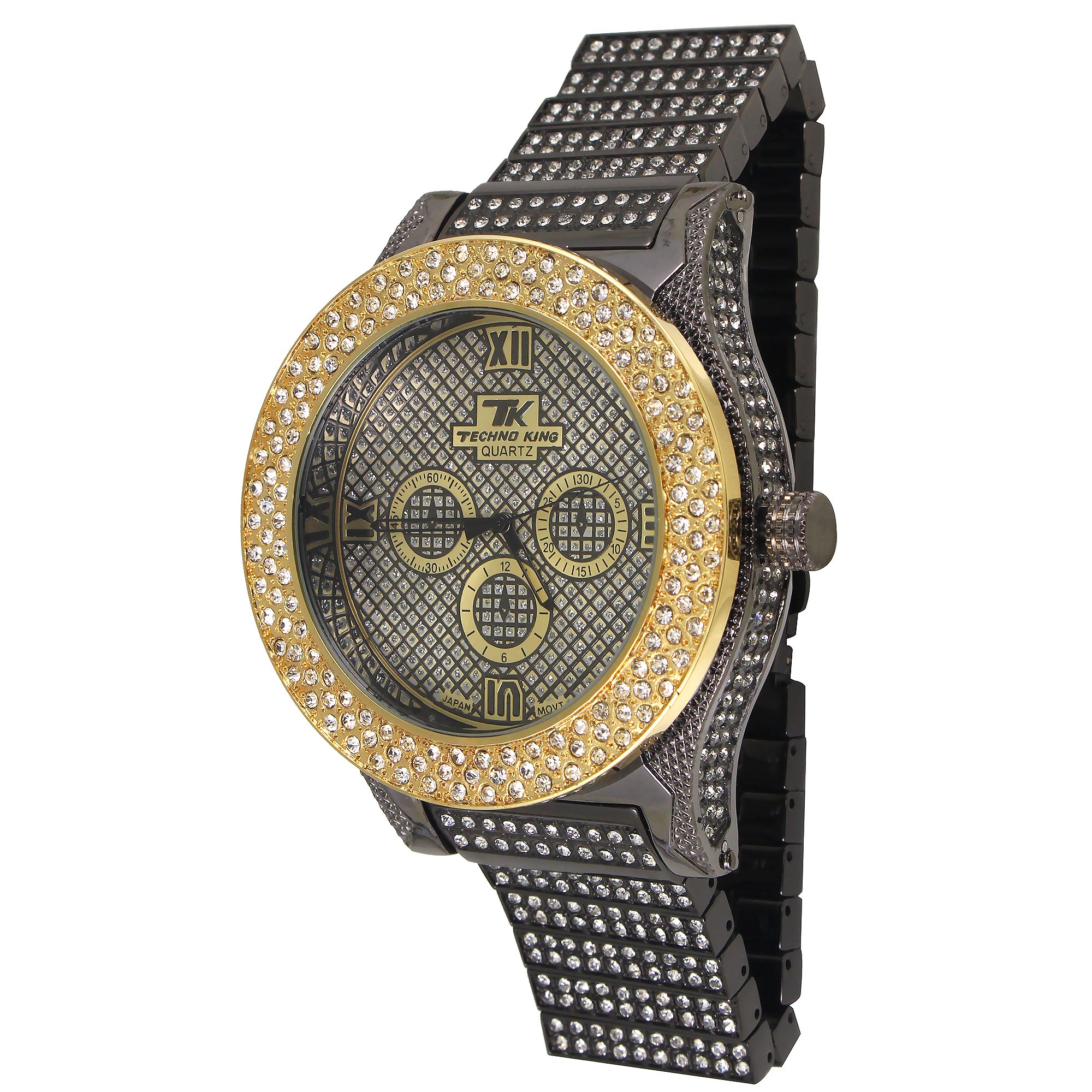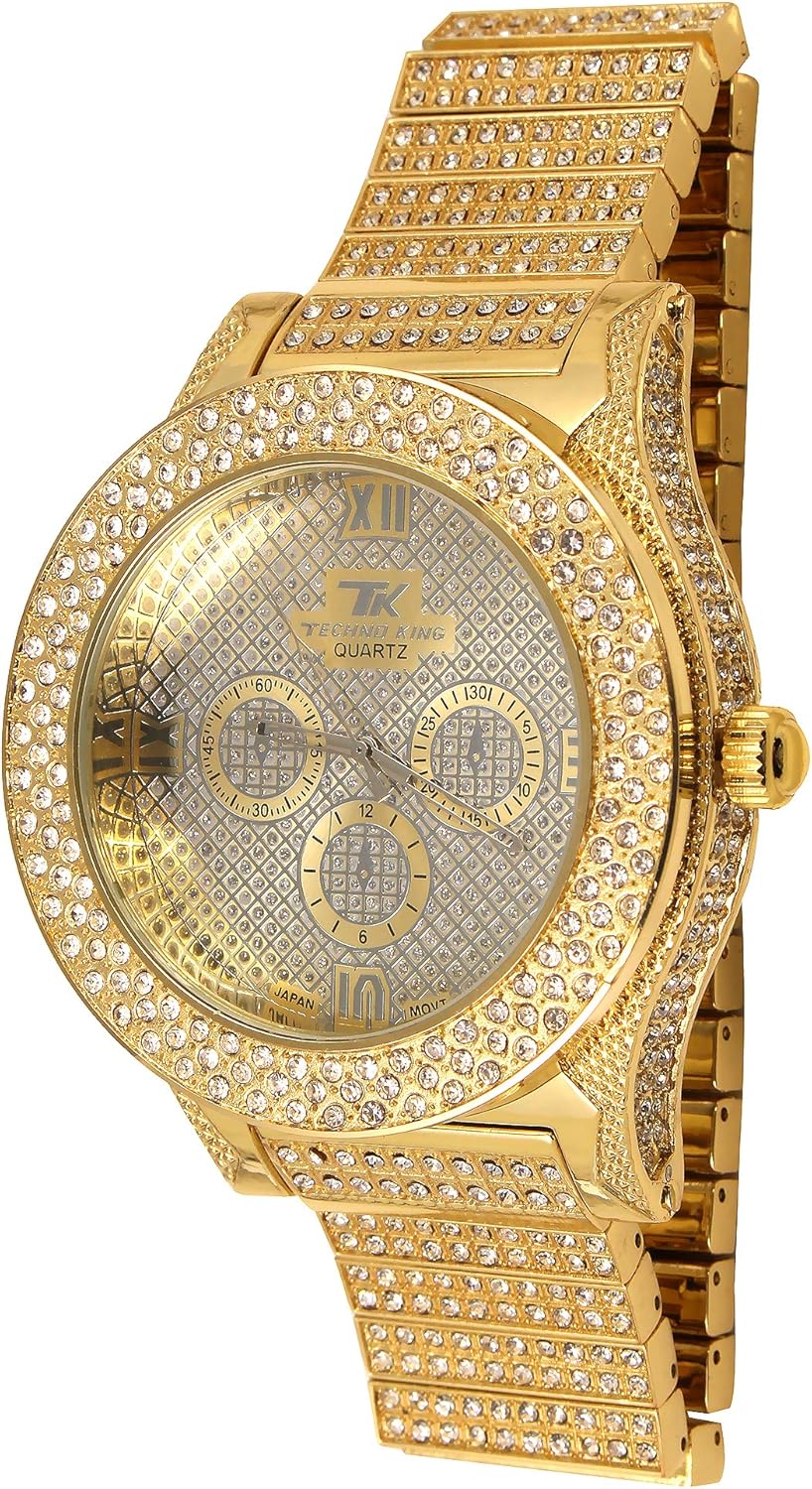 Amazon Com Techno King Men S Iced Out Hip Hop Metal Band Watch