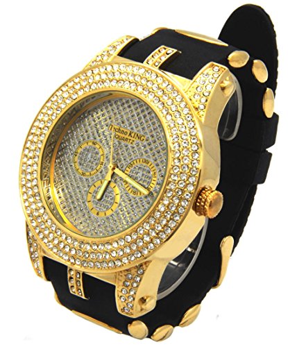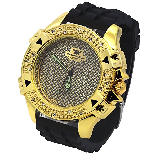 Amazon Com Techno King Gold Finish Gold Face Watch Black Silicone