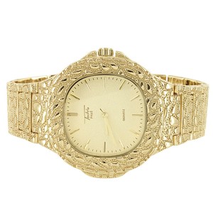 Master Of Bling Men S Gold Face Gold Tone Nugget Band Techno
