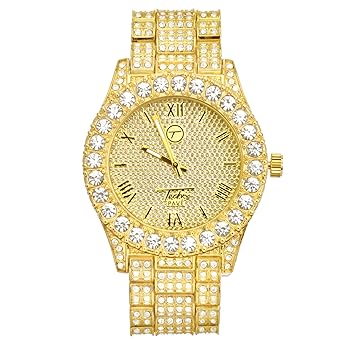Amazon Com Mens Hip Hop Luxury Iced Out Techno Pave Watch Gold