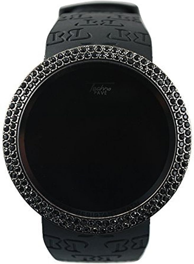Touch Screen Watch Silicone Black Band Mens Techno Pave Led