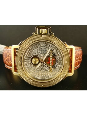 Mens Techno Master Genuine Diamond Watch All Gold Tone Metal Band