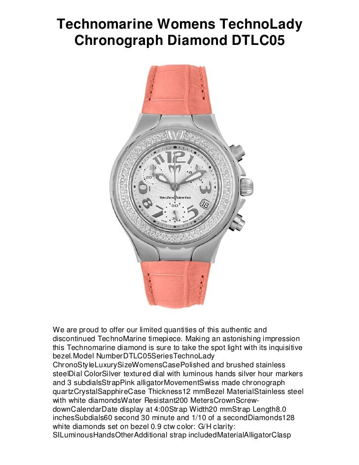 Technomarine Womens Techno Lady Chronograph Diamond Dtlc05 Free Shi