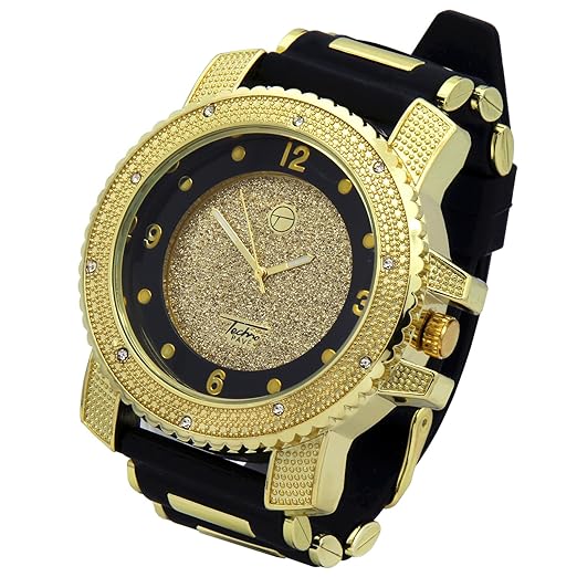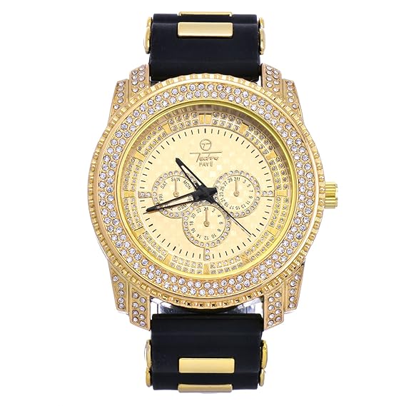 Amazon Com Totally Iced Out Cz Techno Pave Gold Tone Black Band