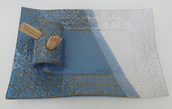 Techo De Chapa Con Textura Azul Y Blanco Hecho A Mano Ceramica Etsy