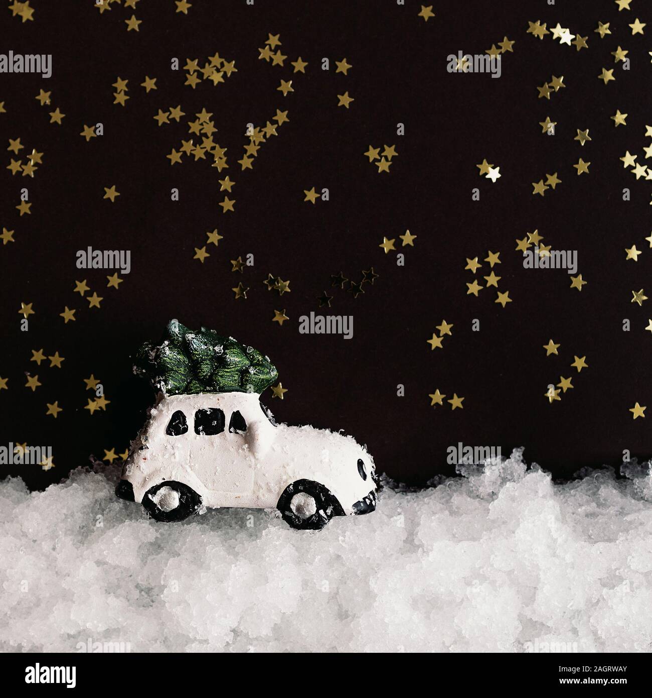 Miniatura De Un Coche De Juguete Blanco Lleva Un Arbol De Navidad