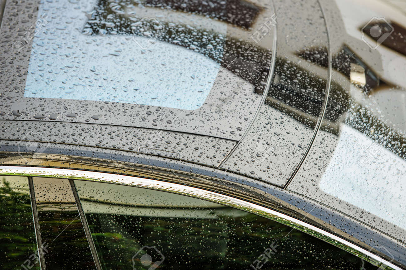 Enormes Gotas Lluvia Sobre Vidrio Gotas Lluvia Techo Cristal Coche