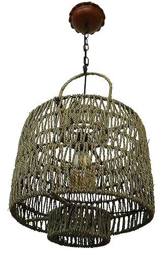Lampara Colgante Rustica De Techo Con Fibra Vegetal Madura