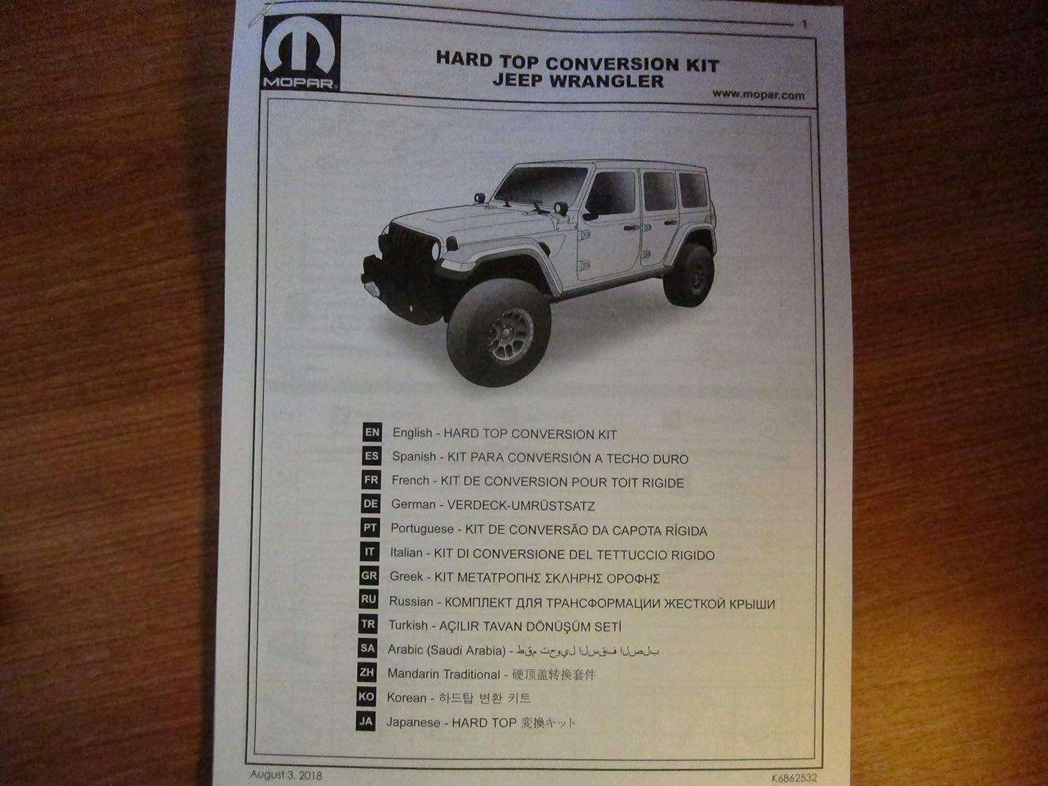 Amazon Com Mopar 2018 Jeep Wrangler Jl Hard Top Conversion Kit
