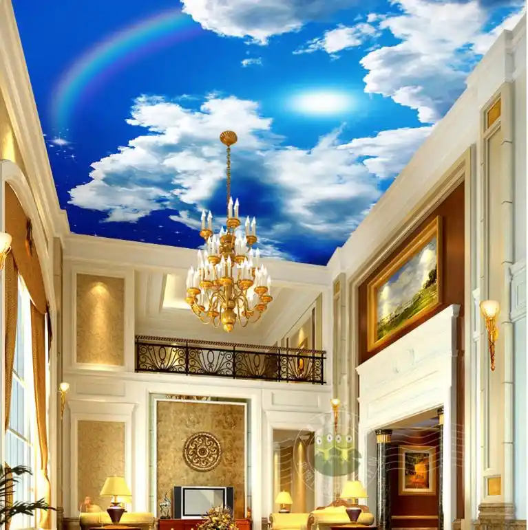 Foto Papel Blanco Nubes Sol Arco Iris 3d De Techo Habitacion