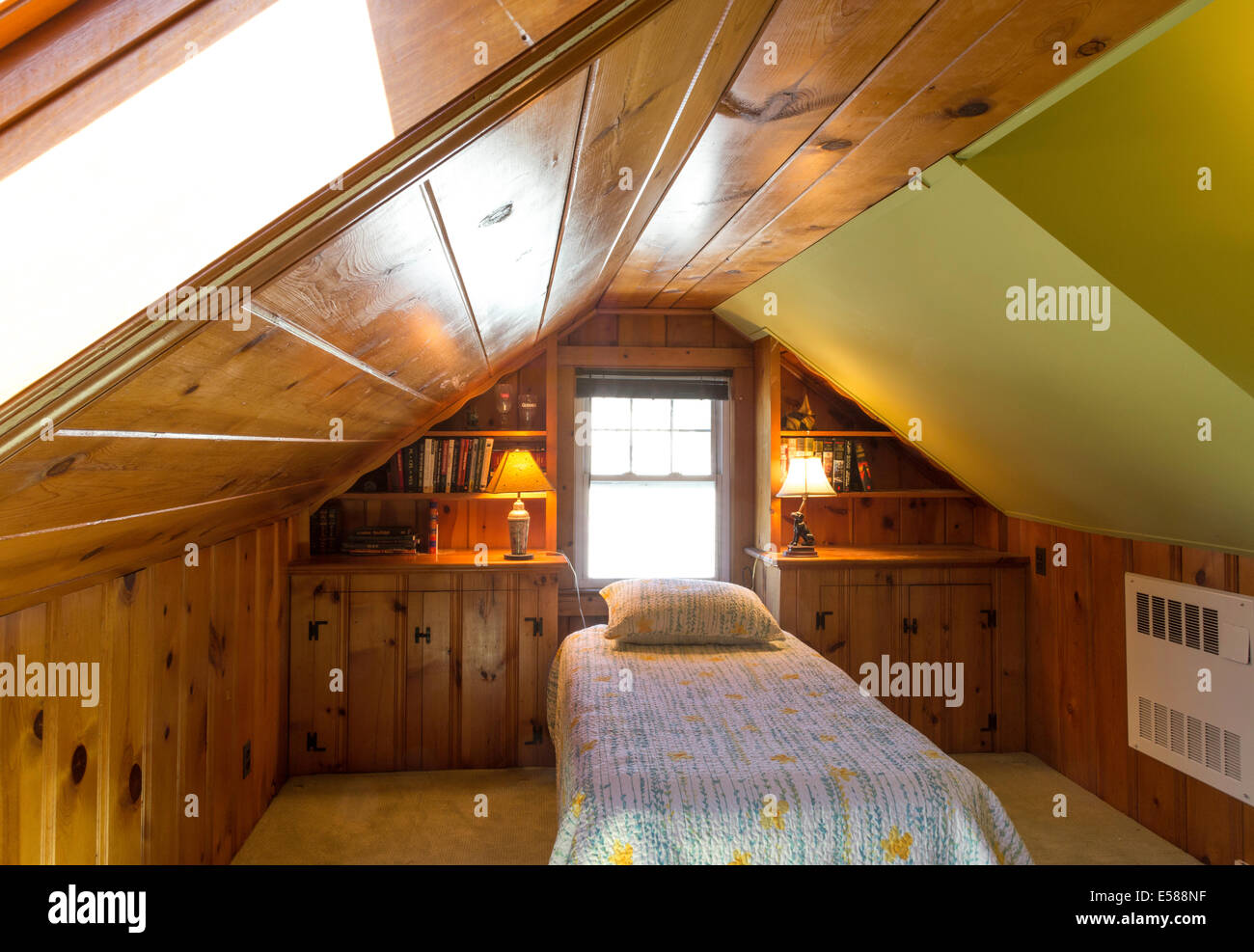 Habitacion Abuhardillada De Madera Con Techo Inclinado Cama