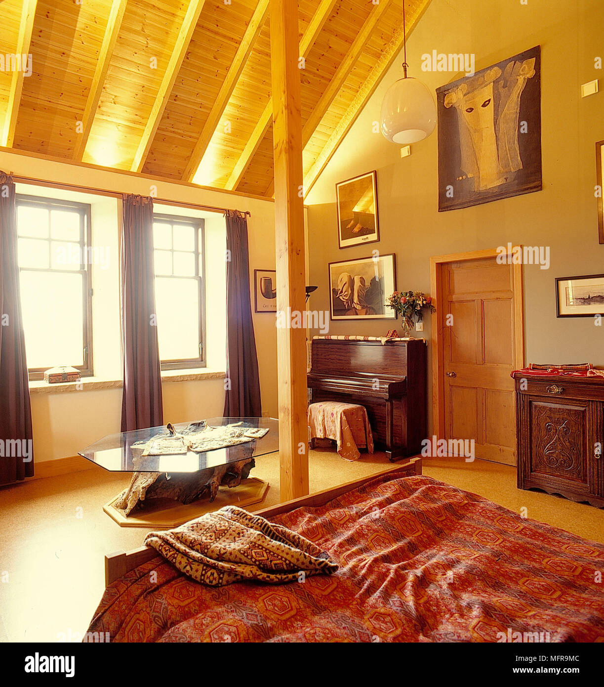 Dormitorio Vigas De Madera Del Techo Inclinado De Techo De Paja