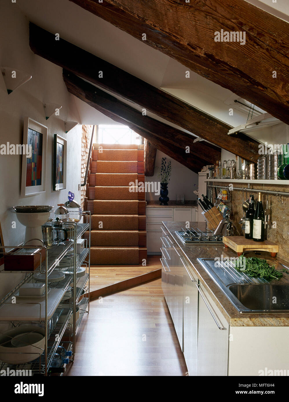 Cocina Nordica Bajo Techo Inclinado Y Vigas De Madera
