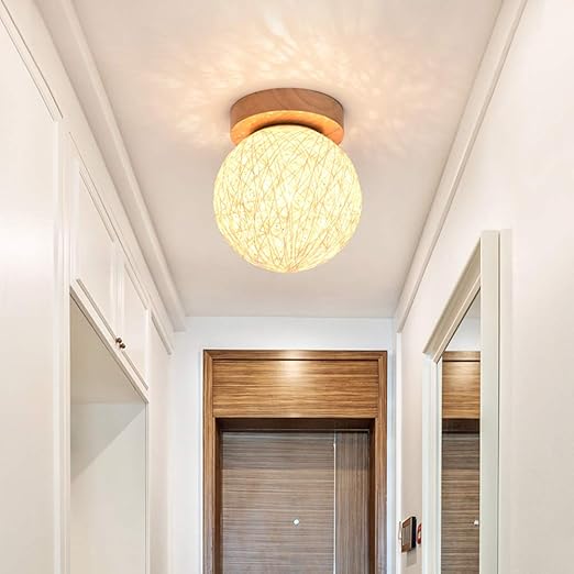 Lampara De Techo Led Pastoral Ball Rattan Arana De Madera Para