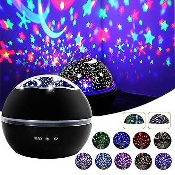 En Color Negro Bebe Lampara Con Proyector De Estrellas Y Lunas