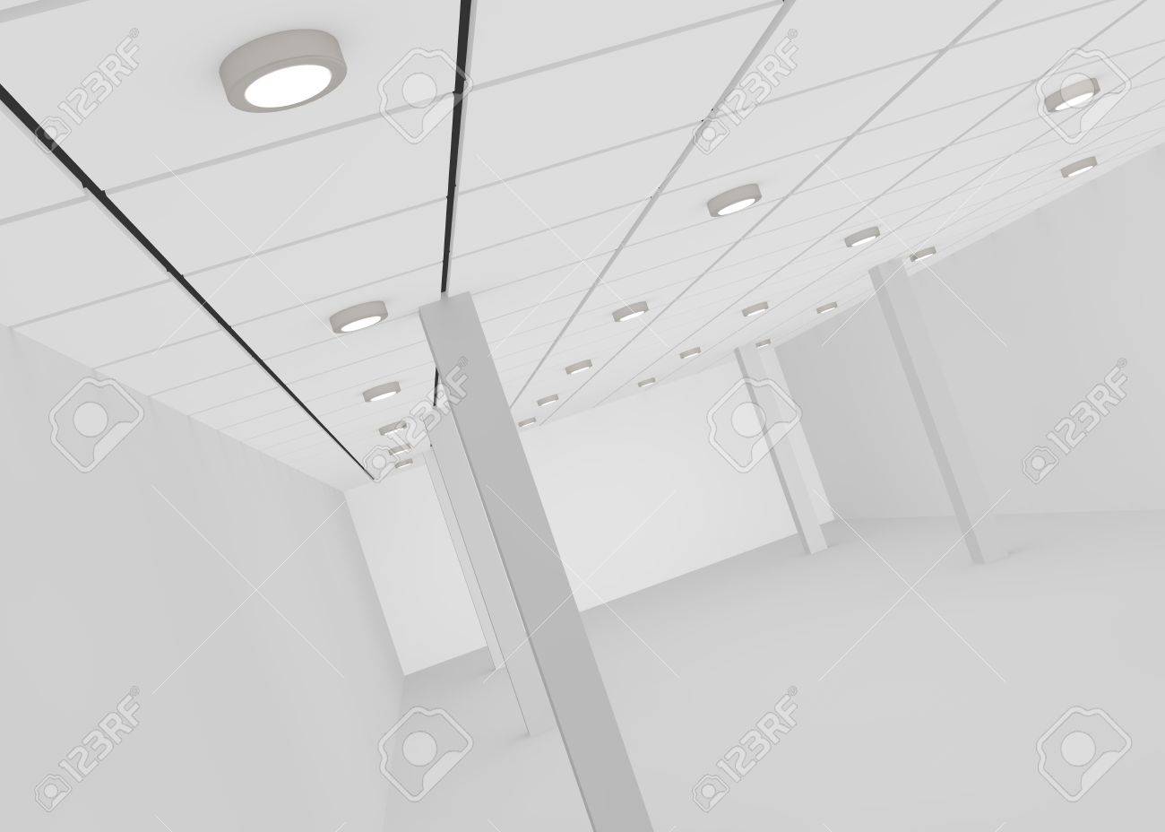 Sitio Vacio Blanco Para Una Tienda U Oficina Con Luces En El Techo