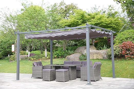 Outsunny Cenador Con Techo Retractil Pergola Para Jardin Terraza O