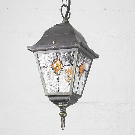 Colgante Rustico Aplique De Exterior En Oro Envejecido Con Cristal