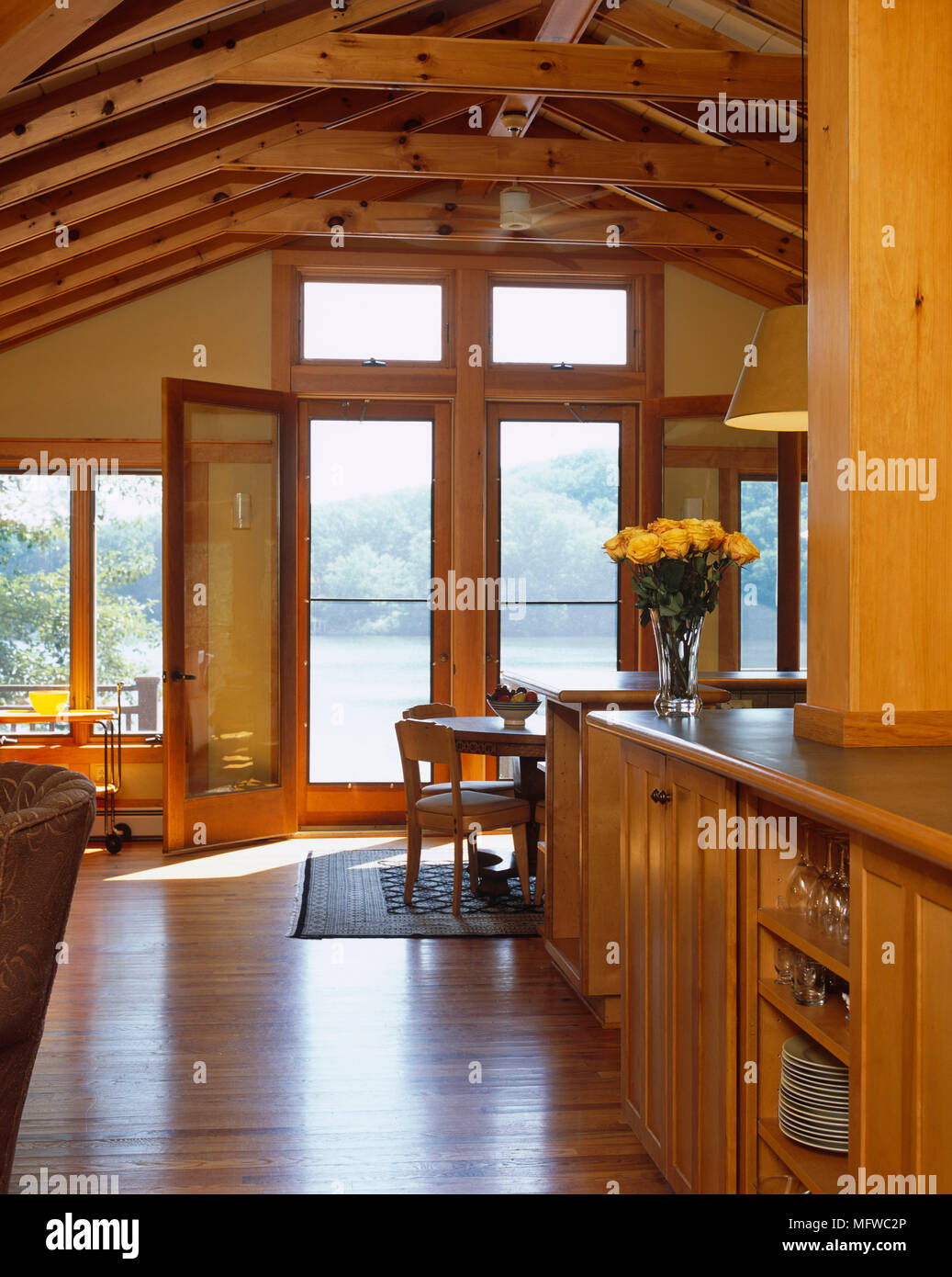 Unidad Montada De Madera En Estilo Rustico Comedor Con Vigas En El