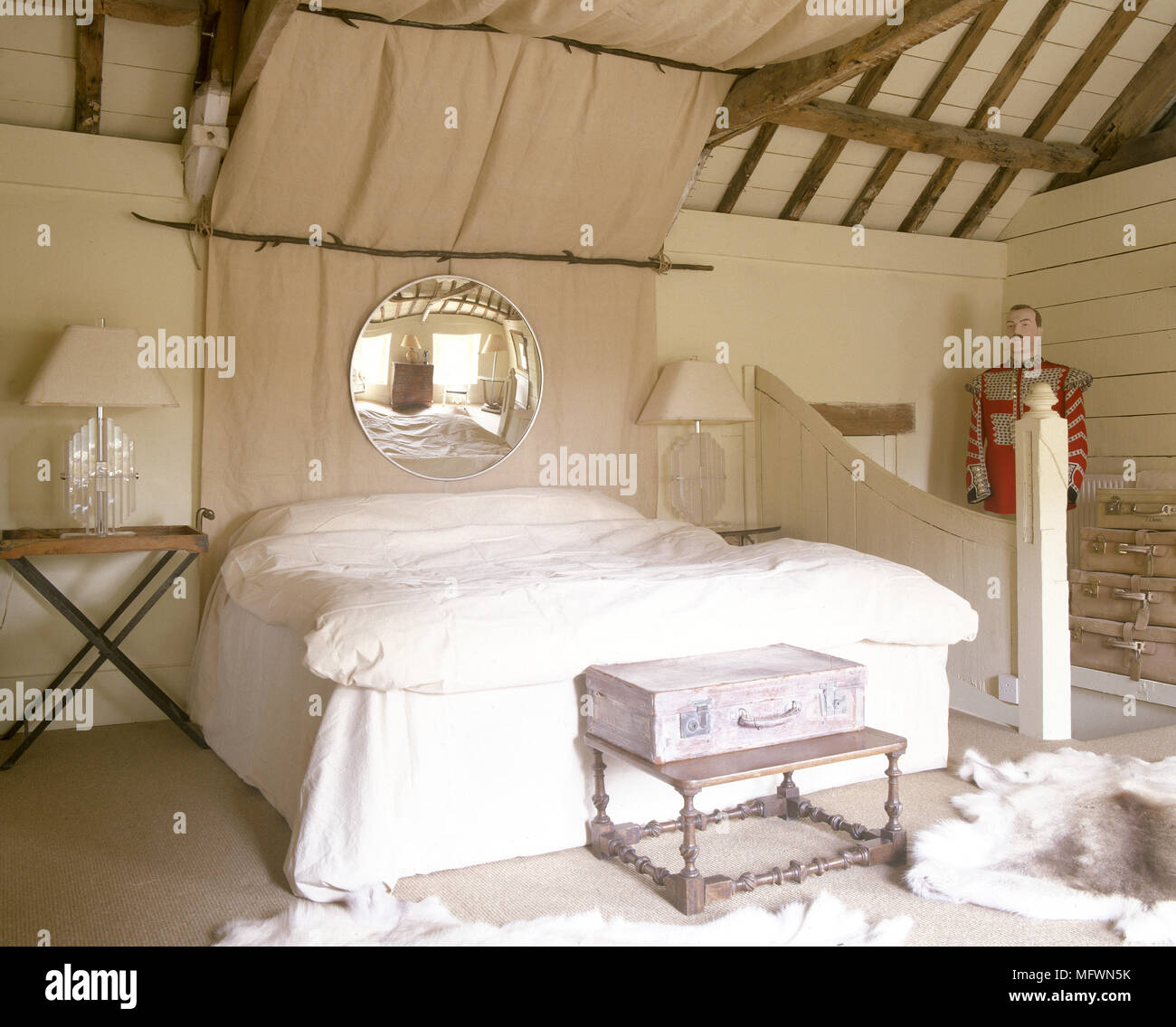 Cama Doble Dormitorio En Estilo Rustico Con Vigas En El Techo Foto