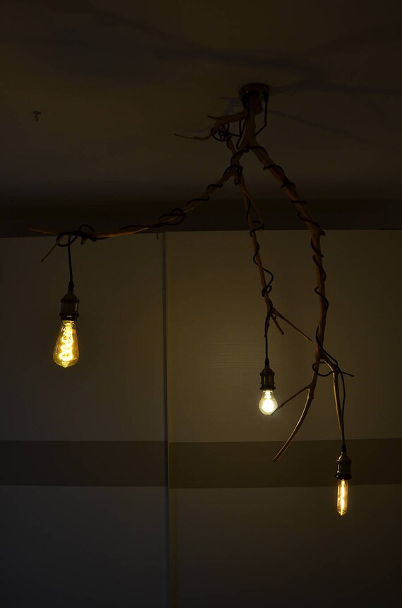 Arana De Madera Natural Lampara De Techo Rustico Con Rama De Etsy