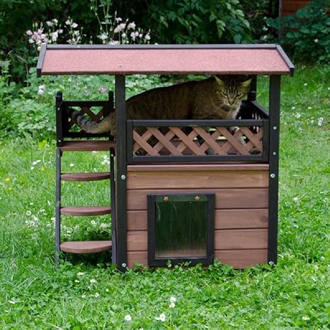 Casa De Madera De Exterior Para Gato Con Terraza Y Techo Para