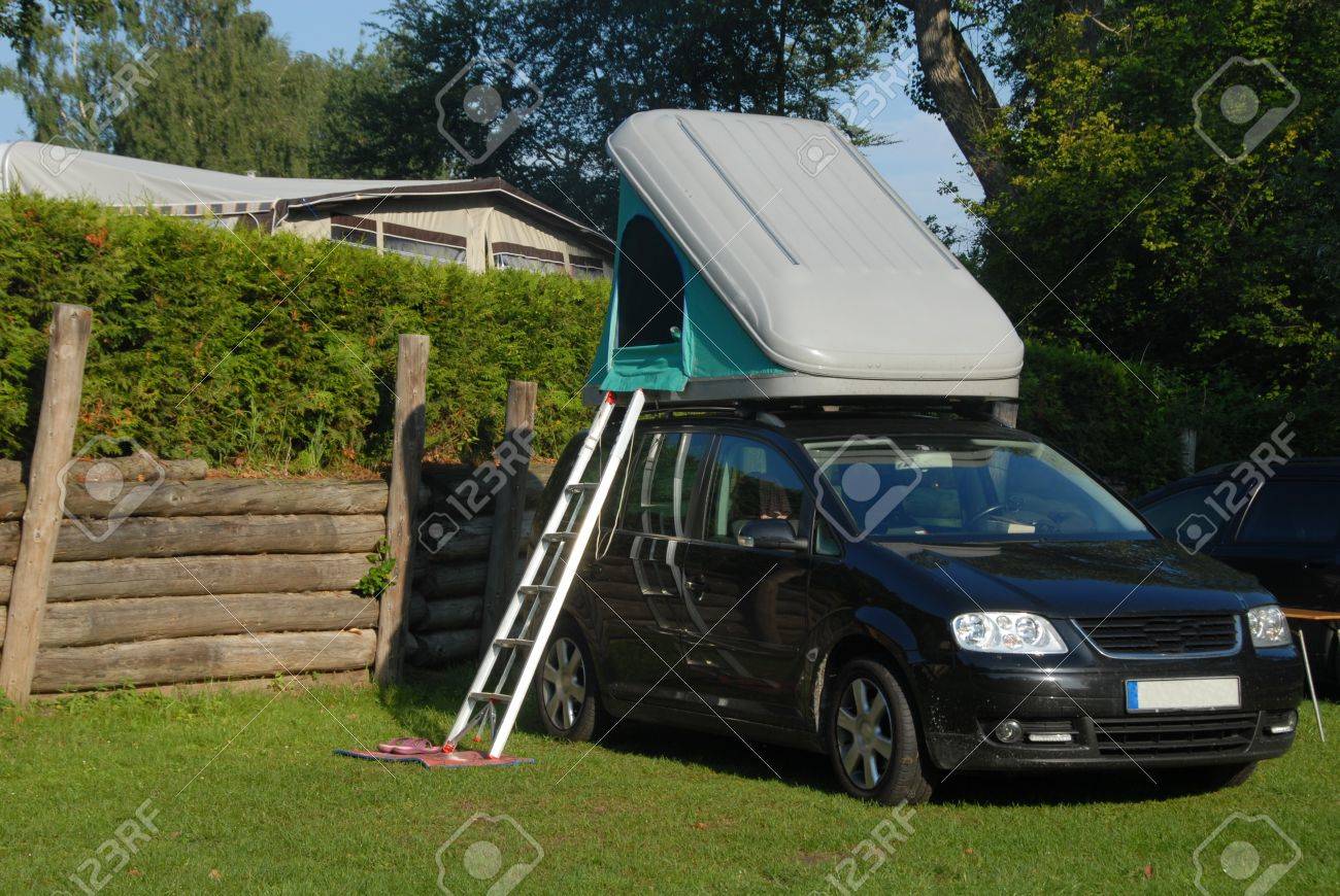 Camping Holidays With Car Roof Tent Stock Photo Picture And