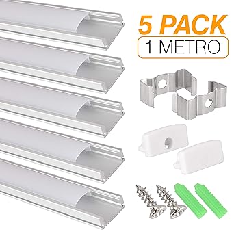 Perfil De Aluminio Para Tira Led Pack De 5 Canaletas De 1 Metro