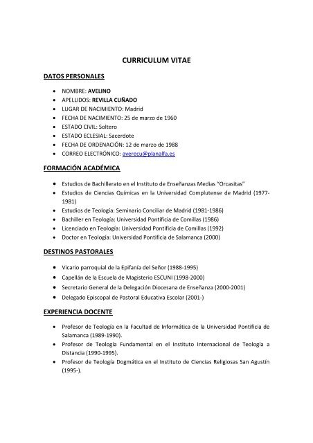 Curriculum Vitae Facultad De Teologaa San Da Maso