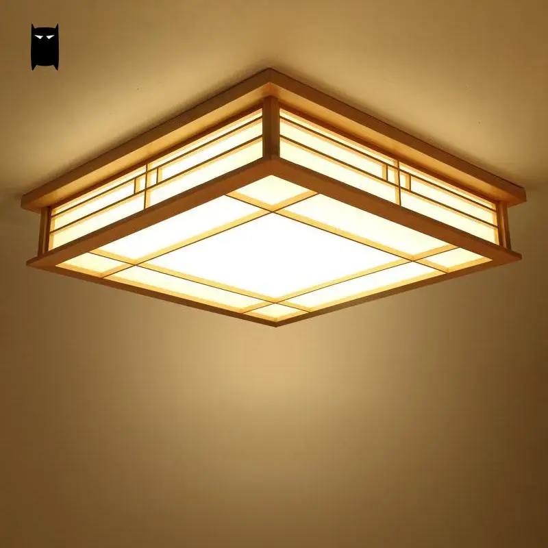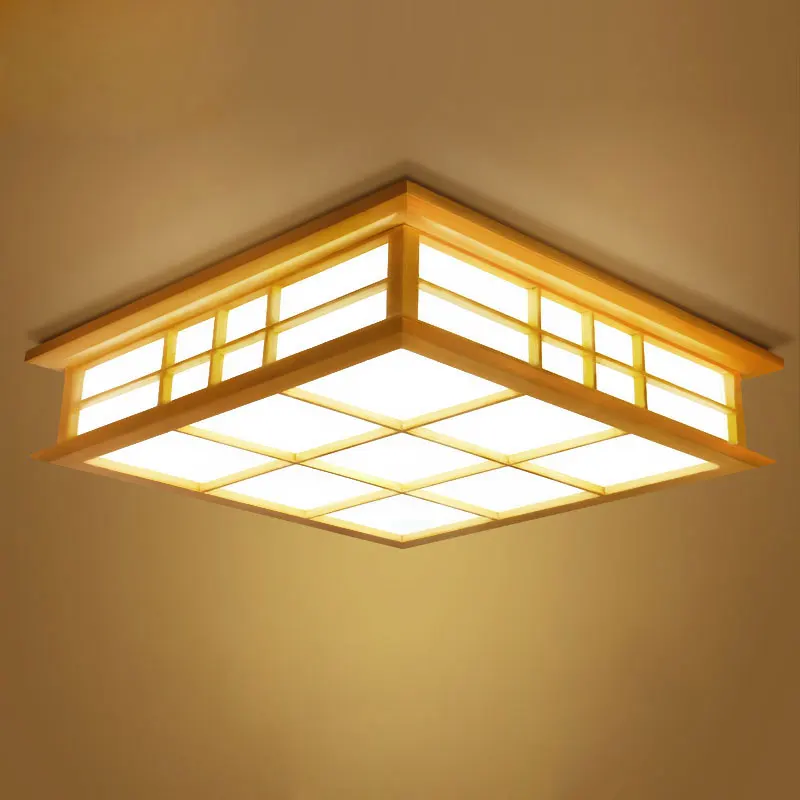 Led De Madera Cuadrada Tatami Lampara De Techo Estilo Japones
