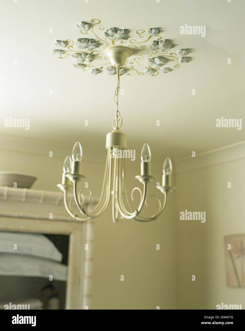 Roseton De Techo De Escayola Pintada Hecha Con Hojas De Hiedra Por