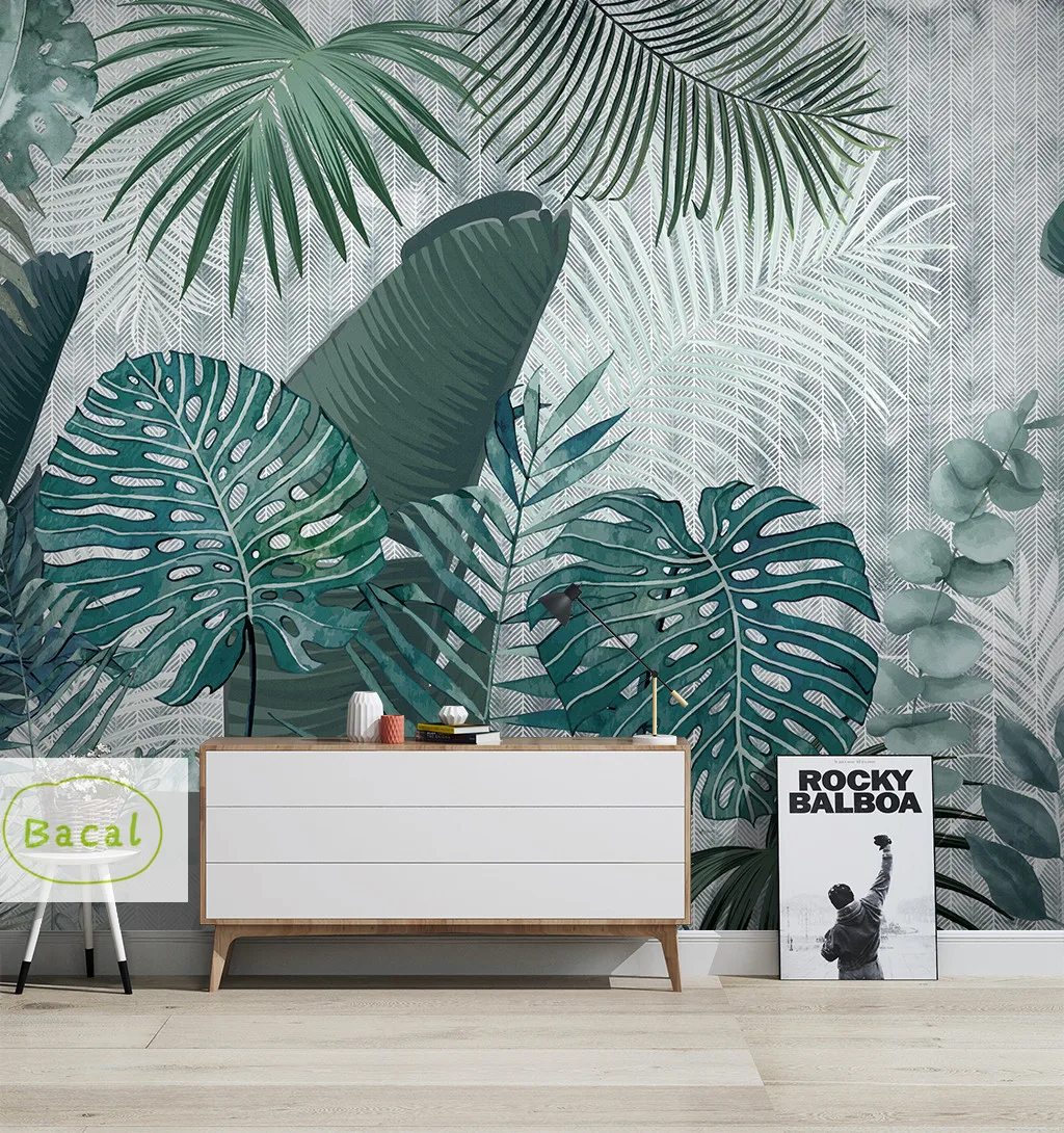 Venta Papel Pintado De Relieve Hoja Verde Oscura Para Sala Estar