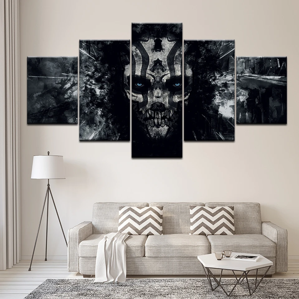 Calavera Oscura Con Ojos Azules Pintura Lienzo 5 Piezas Arte De La