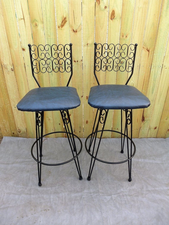 Pair Of Arthur Umanoff Granada Swivel Bar Stools Scroll Design Etsy