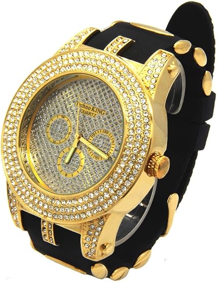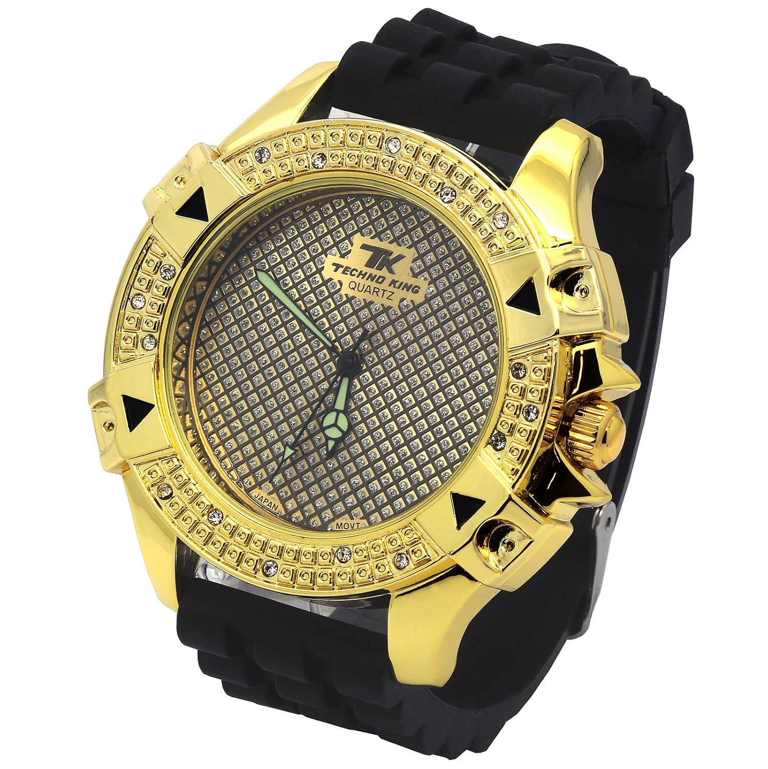 Amazon Com Mens Gold Case Metal Techno King Hip Hop Fashion Black