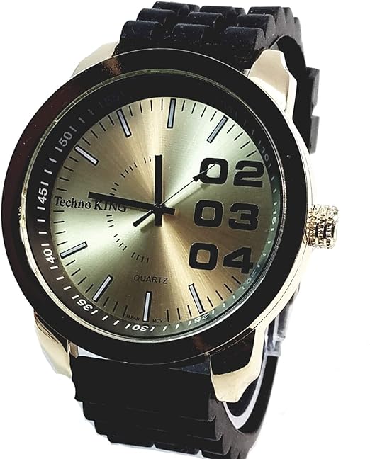 Amazon Com Techno King Gold Finish Gold Face Watch Black Silicone