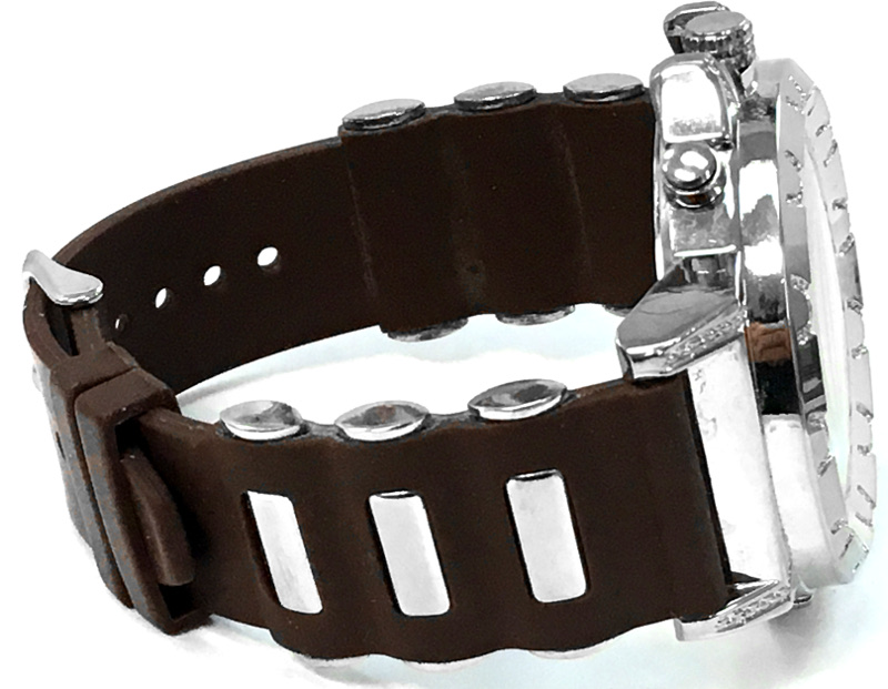 Techno King In Black Leather Band With Rhinestone Embedded Case