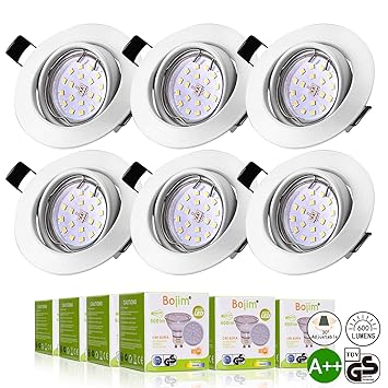 Bojim Pack De 6 Foco Empotrable Led Gu10 Luz De Techo 6w