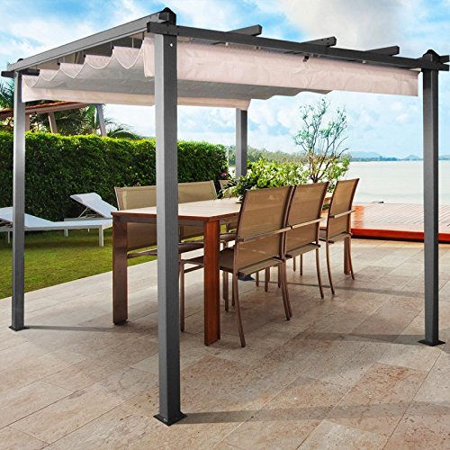 Pergola Con Techo Retractil Gazebo Cenador Para Jardin Patio 3x3m