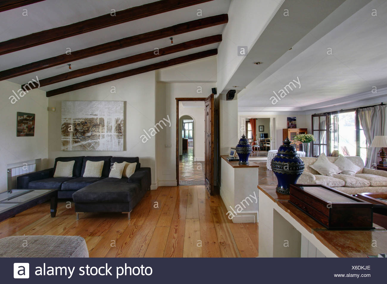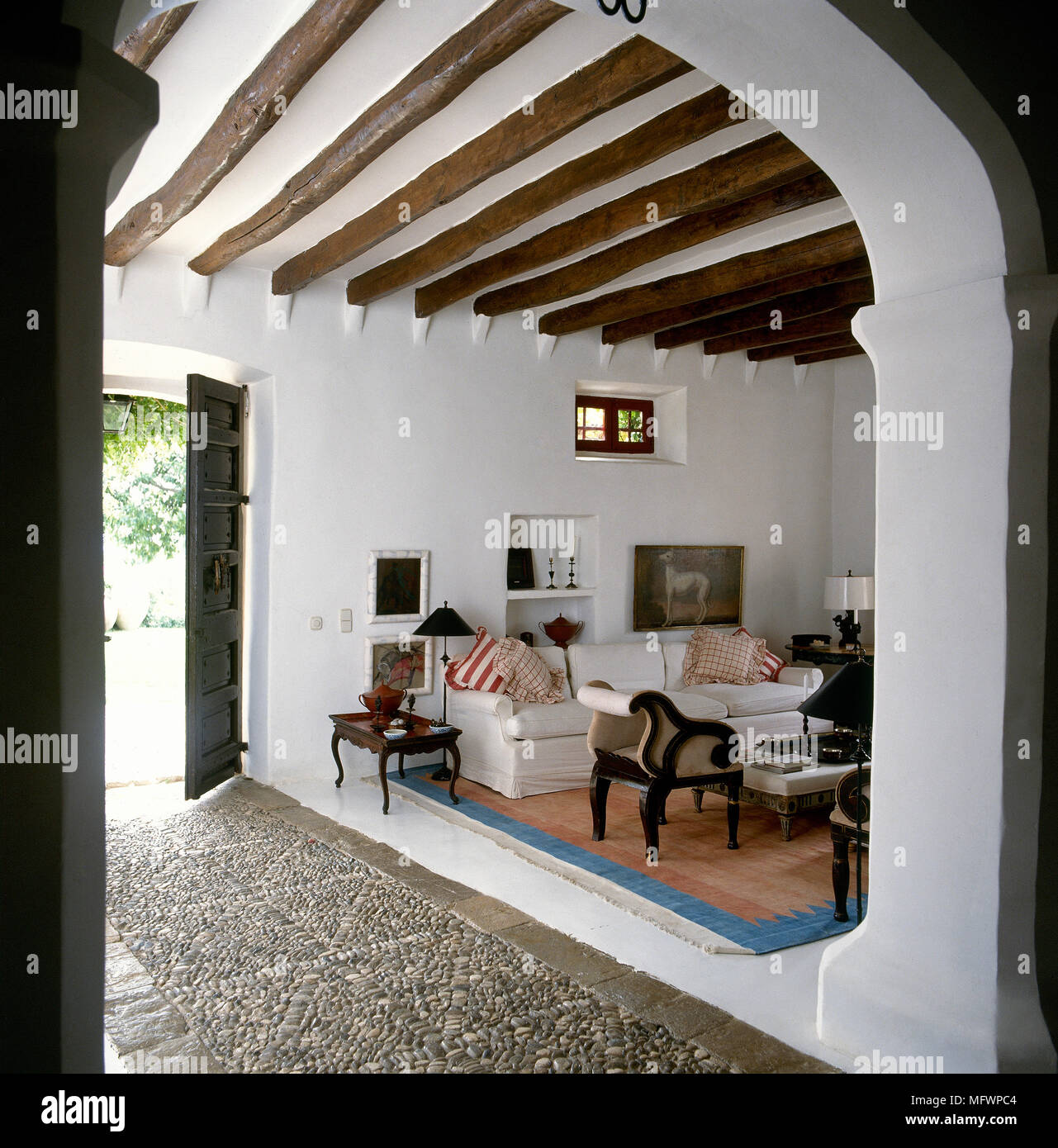 Pais Blanco Estilo Salon Con Techos De Madera Vista A Traves De