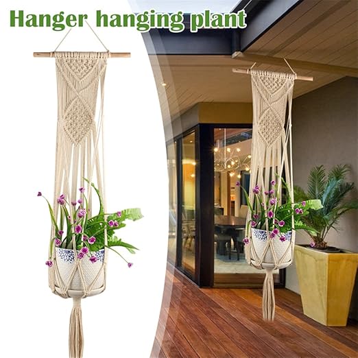 Planta Percha Yute Natural Canamo Cuerda De Macrame Flor Maceta